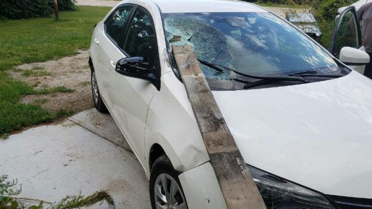 The Fremont County Sheriff's Office in western Iowa says the driver had a medical condition and ran off the road, smashing through several mailboxes, then left the scene with the board still sticking through the windshield.