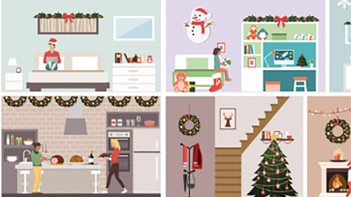 The illustration shows a Christmas Eve scene at a home, but hidden in it are six presents. Are you able to find them all? The average person takes 45 seconds to do it, but if you were always able to find your parents' hiding spots, you'll likely do it faster.