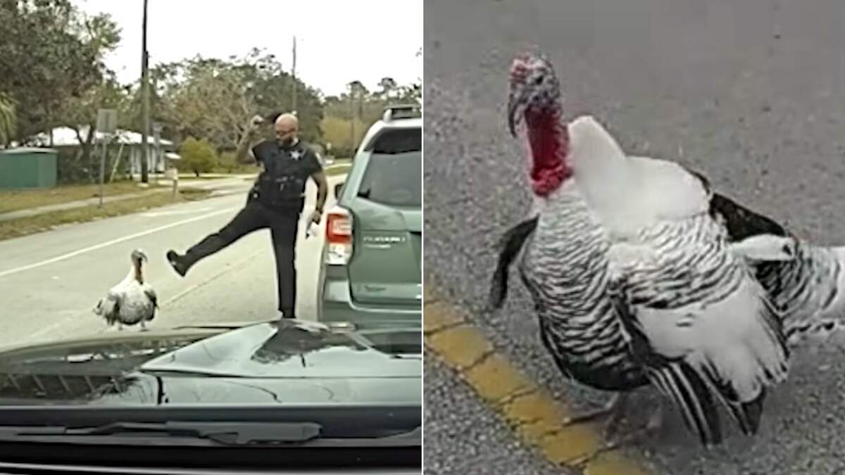 An "irritated" turkey gave a Florida deputy a piece of its mind during a traffic stop, and the hilarious interaction was caught on camera. The St. Johns County Sheriff's Office recently shared body camera footage of Deputy Carson fending off the bird in the Vermont Heights Neighborhood on February 29.