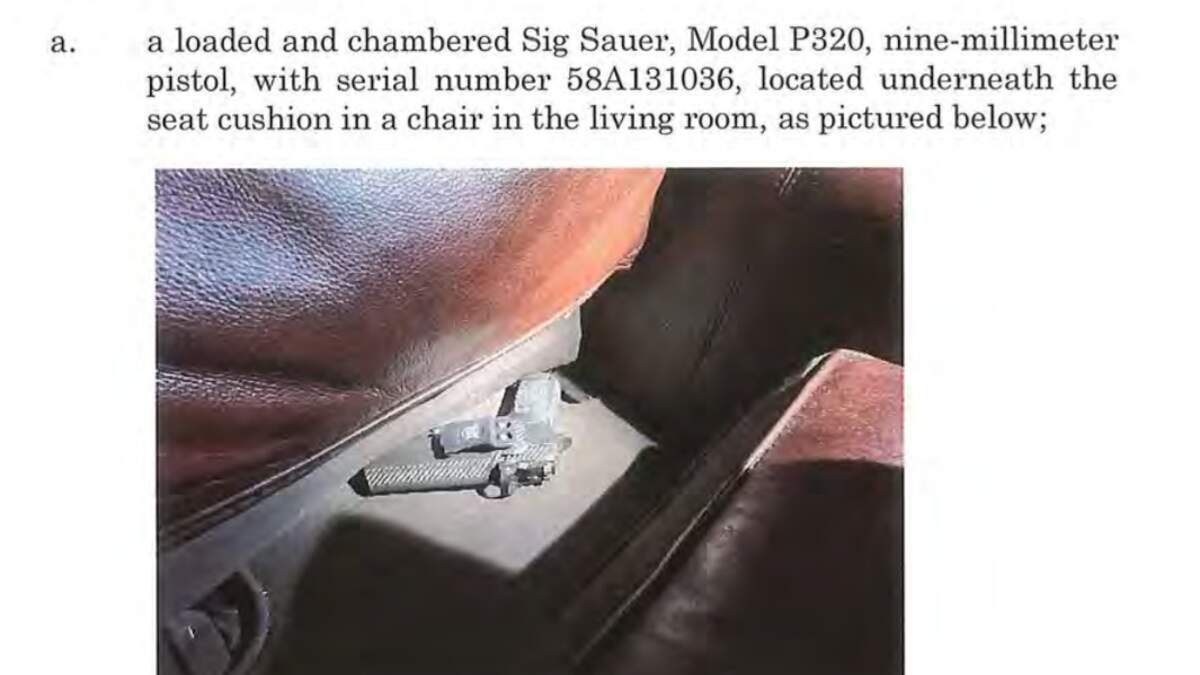Investigators say he had a loaded gun under a chair cushion in the living room, a loaded rifle in the closet, and a shotgun behind the master bed headboard, plus a loaded handgun in his car.