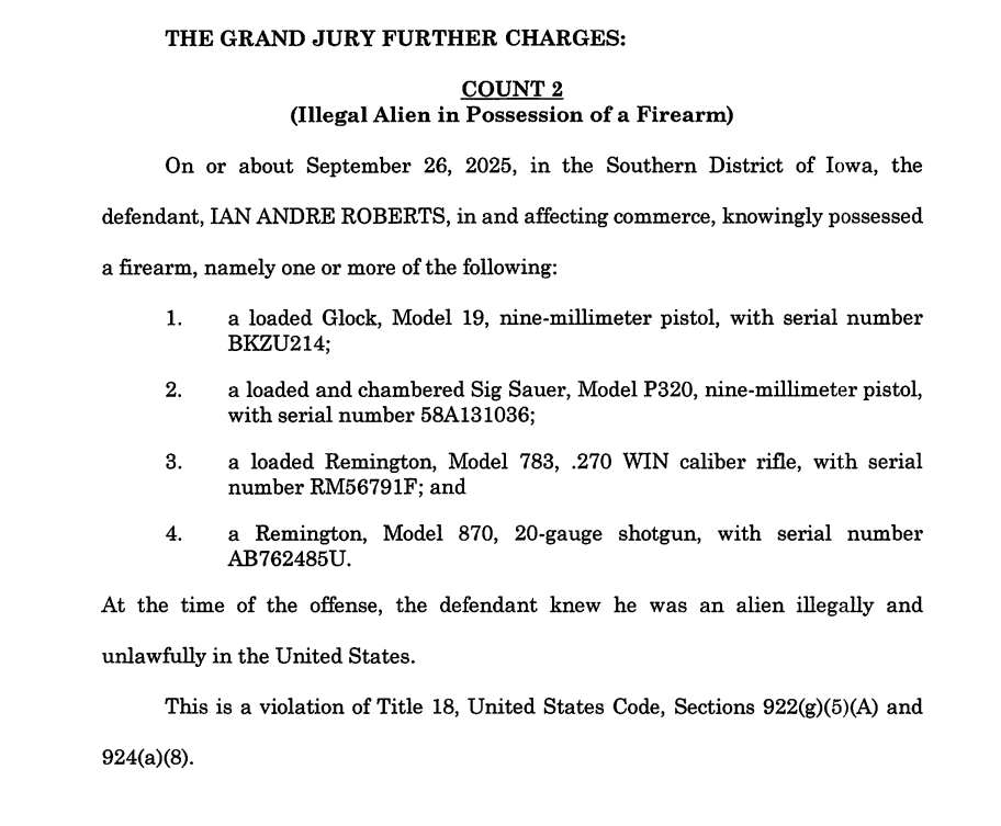 The grand jury also indicted Roberts, who was born in Guyana, for illegally owning firearms.
